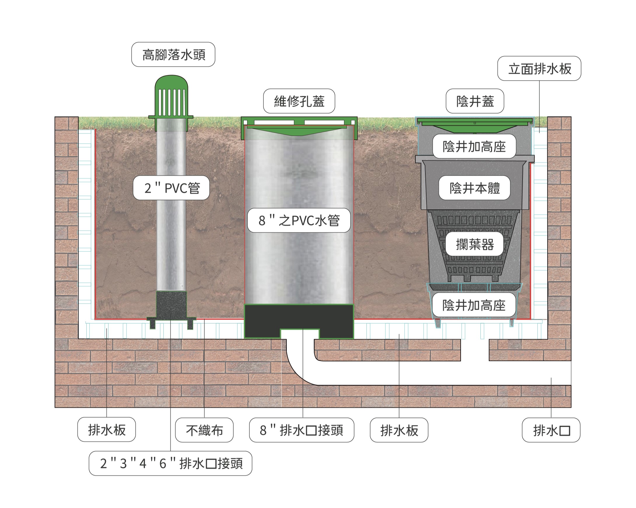 繽紛建議整組搭配購買(例如排水板、出水頭、導水管與孔蓋)