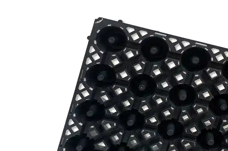 Our plastic drainage mats are made of high-quality PP or HDPE materials, ensuring durability and stability. The 35x35x4.5cm size is suitable for rooftop greening applications, and the specially designed mats offer both support and water retention, making them a reliable choice for rooftop greening drainage.